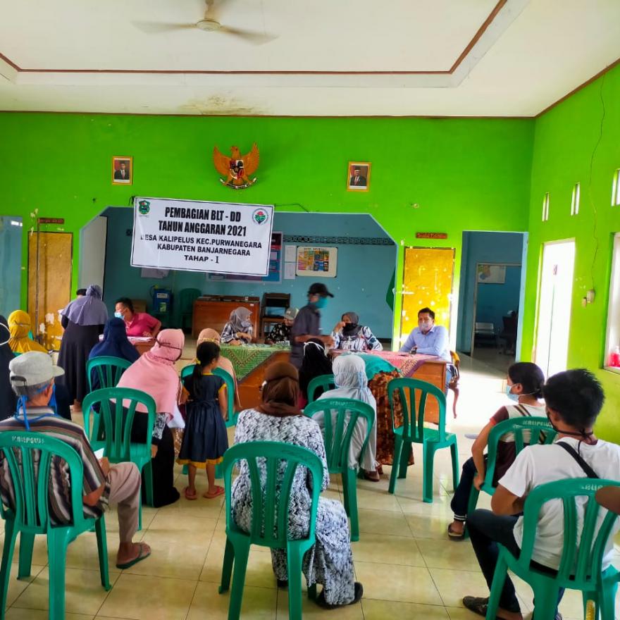 Pembagian BLT DD Tahap I TA 2021 alkhamdulilah berjalan lancar,dengan tetap mematuhi Protokol Kesehatan dan secara langsung di dampingin oleh BABINSA dan BABINKAMTIBMAS Desa Kalipelus Kec.Purwanegara
