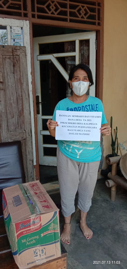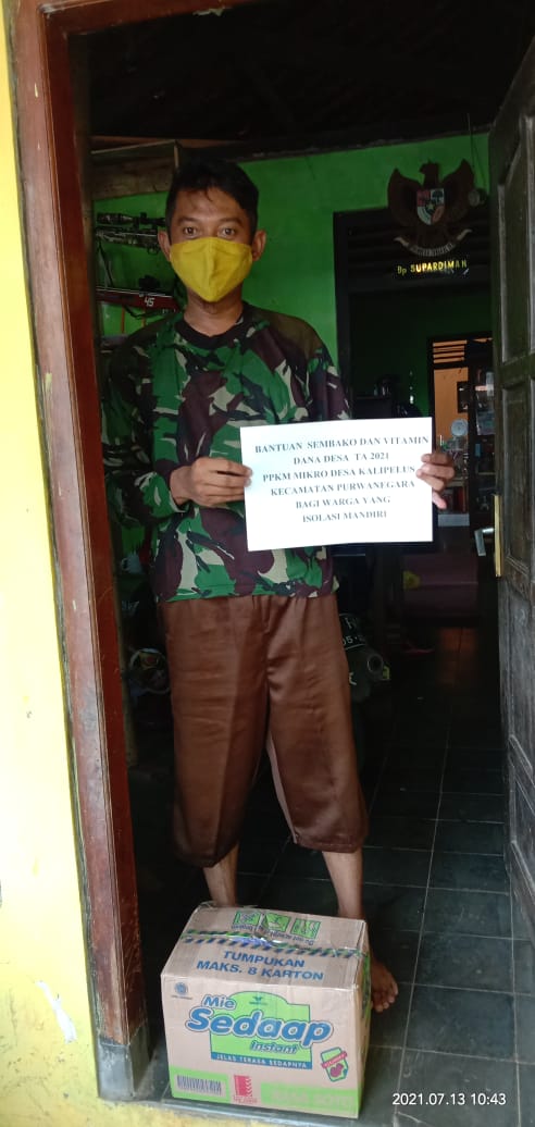 Bantuan sembako dan obat/vitamin di berikan warga masyarakat desa Kalipelus yang sedang melakukan isolasi mandiri.